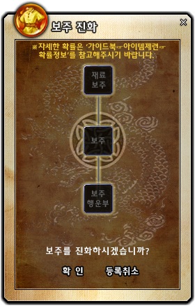 | 1. 与宝珠管理器 NPC 对话以打开宝珠进化窗口。 2. 将与待进化球体相同的部件和等级的球体放入材料位置。 3. 可以使用宝珠幸运书来提升进化几率。 |